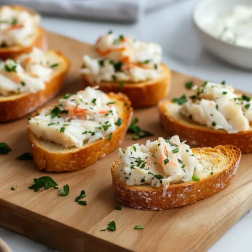 Fresh lump crabmeat mixed with yogurt, lemon, and herbs, served on crisp baguette rounds. A light, flavorful appetizer perfect for summer parties or solo snacking.