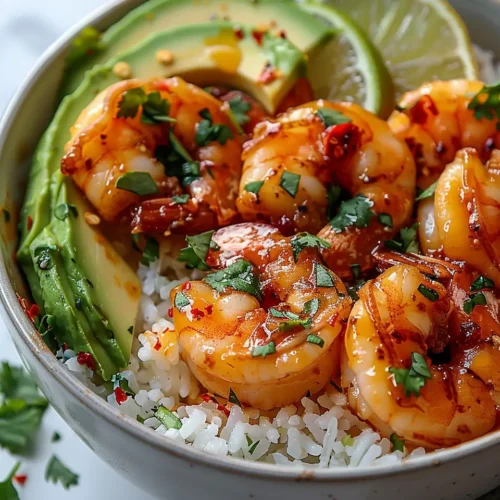 Spicy Shrimp and Avocado Rice Bowl with Lemon